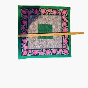Floral Pattern Satin Scarf 28x28 Green Pink Rose