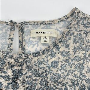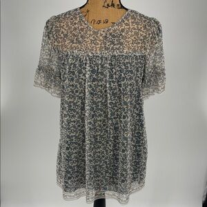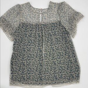 Elegant blue and cream floral print top. Perfect for adding a touch of sophistication to any outfit.