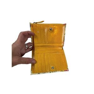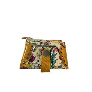 Vibrant wallet with a floral design, featuring multiple card slots, a secure coin pouch, and snap closures. Ideal for organizing essentials.