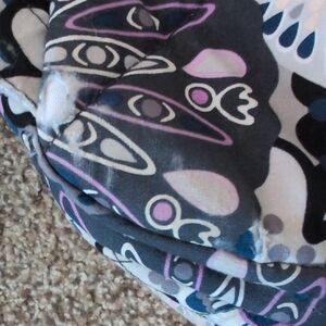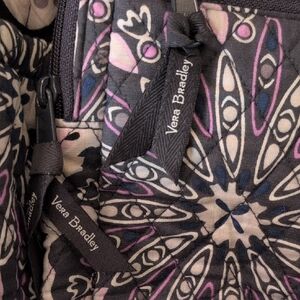 Vera Bradley Stylish floral patterned backpack with a blend of purple and pink hues. Perfect for everyday use. Some wear on the back as seen in pictures. some stain on handle and straps from use. All zippers work. has a laptop area .