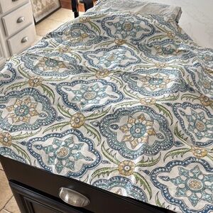 King duvet and 2 euro shams. Parsley medallion Enhance your bedroom with this elegant floral patterned bedding set. Featuring a blend of blue, green, and cream colors, this set adds a touch of sophistication to any decor..