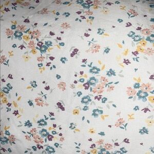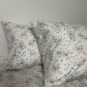 Enhance your bedroom with this elegant floral patterned bedding set. The soft white background is adorned with colorful floral designs, adding a touch of nature to your space. Perfect for a cozy and stylish bedroom.