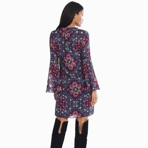 This elegant dress features a stunning floral pattern in blue and pink. Perfect for any occasion, it offers a stylish and comfortable fit.