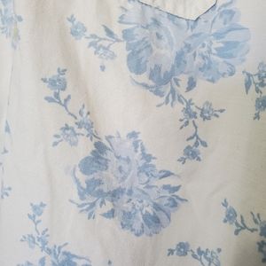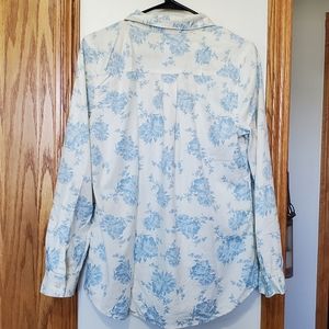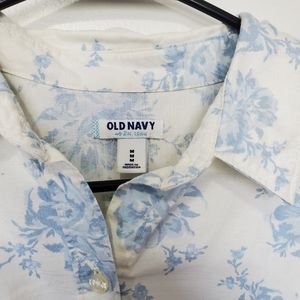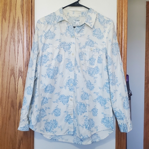 Old Navy blue and cream/off-white floral patterned button-down. Colors/pattern shown up close in 3rd photo. Worn a handful of times, but still in great condition. Women's M. Smoke free, pet friendly home.