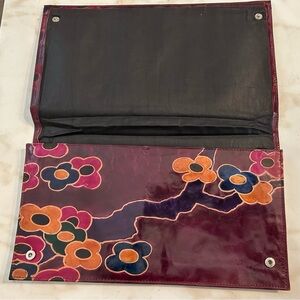 Stylish clutch with vibrant floral patterns. Perfect for adding a pop of color to any outfit.