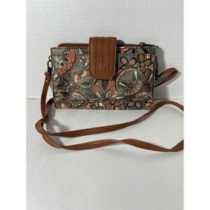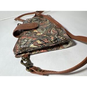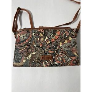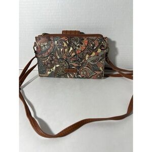 Stylish crossbody bag with a floral pattern, perfect for any occasion. Features a convenient strap and secure closure.