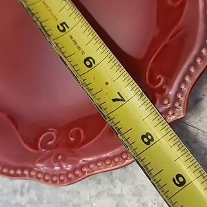 Enhance your dining experience with this elegant set of 4 floral patterned dinner plates. Featuring a delicate design with red and blue accents, these plates add a touch of sophistication to any table setting.