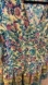 Vibrant floral dress featuring ruffle sleeves. Perfect for a stylish look. This is a Lance Cade medium rounded “V neck“ mini dress or long blouse. Floral print which is dotted beige background with aqua, pink, green floral design. Pleated skirt bottom that runs 10 inches. The sleeve is 15 inches long with a 9 inch ruffle on the bottom portion of the 15 inches. The opening at the neck is 6 inches. It is top to bottom 35 inches in the front and in the back 33 inches. The pit the pit is 19 inches. The shoulder is 3.5 inches. There are two long strings in the front with brass beads on the end of each. This is absolutely adorable. Can be worn as the dress or as a very long shirt with leggings. Please use all photos as Part of the description. Non-smoking home.