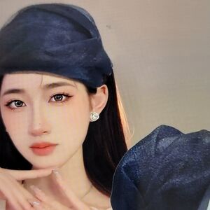 30$ for both pieces. Stylish cap with a floral pattern. Features shades of blue and green. perfect for cover gray hair. floral one is made of silk. Black one is not.