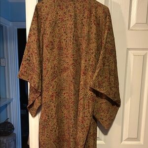 Elegant kimono robe with a floral pattern. Features a mix of earthy tones.