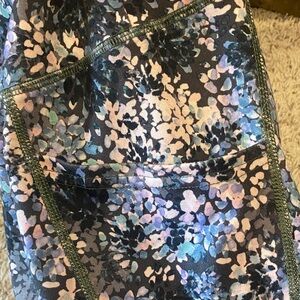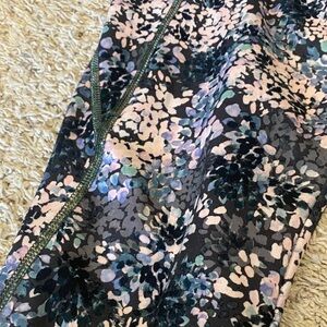 Stylish leggings with a floral pattern. Features a mix of pink and black colors.