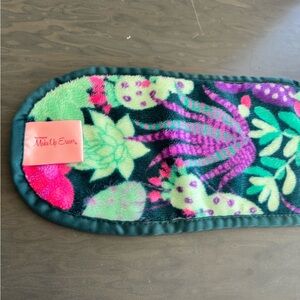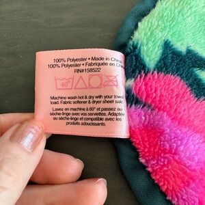 Large Makeup Eraser with a floral pattern. Features pink, green, and purple colors. Never used. 14x6.5 inches