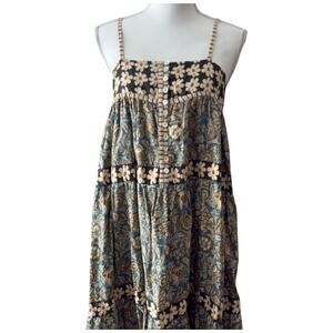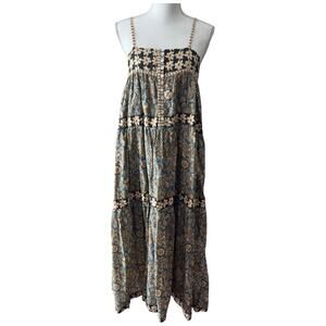 Embrace elegance with this floral patterned maxi dress. Perfect for any occasion, this dress features a beautiful blend of blue and cream colors. Enjoy the comfort and style it brings to your wardrobe. In excellent condition, this dress would be fabulous paired with a cute layering top or sweater or worn by itself.