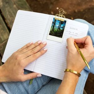 Merge style and functionality with the Pink Daisy Lined Journal, featuring a charming design of soft pink daisies. Perfect for journaling, writing, or school notes, this elegant journal offers a beautiful space to organize your thoughts and inspire creativity. The laminated hardcover and exposed lay-flat binding make it easy to write across every page, while the gold elastic closure and ribbon bookmark keep your notes secure and easily accessible.