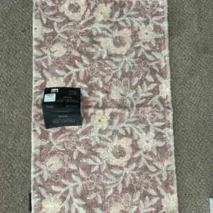 Beautiful floral patterned rug in pink and cream. Can be used in bathroom or kitchen.