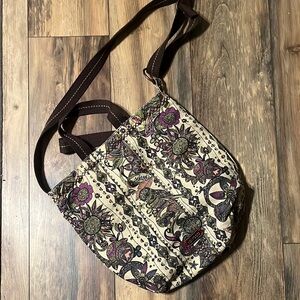 Sakroots patterned shoulder bag with a blend of cream and brown tones. Like new