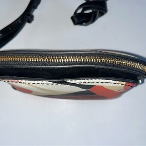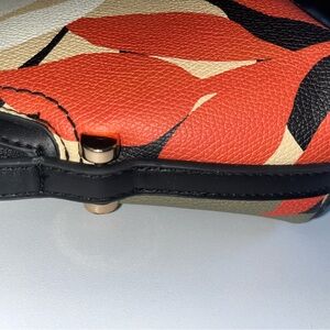 Stylish shoulder bag with a vibrant floral pattern. Features a mix of pink, black, and tan colors for a chic look. Perfect for adding a pop of color to any outfit. Colorful Target Crossbody Purse Tropical Floral Pink Orange Army Green Strap Zip SKU - PB016