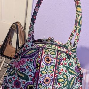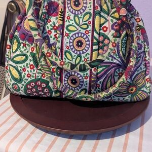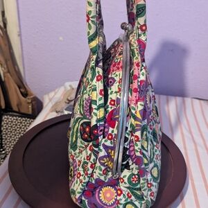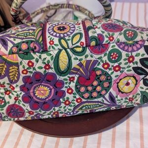 This vibrant floral patterned bag is perfect for adding a pop of color to any outfit. Its unique design makes it a standout accessory. some sins the used