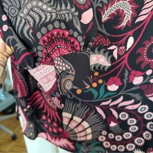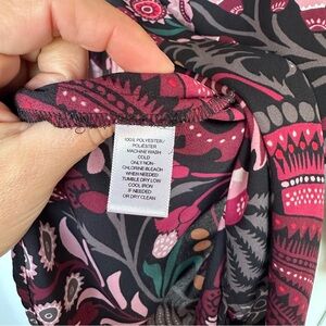This stylish women's top features a vibrant floral pattern in shades of pink and black. Perfect for adding a pop of color to your wardrobe.