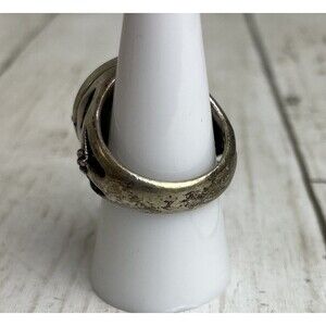 Ring is possibly Sterling silver plated. It is stamped with an eight inside but its measuring closer to 7 1/2 to 7 3/4.