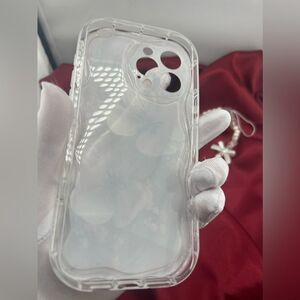 Elegant phone case with floral design and pearl accents. Perfect for style and protection.
