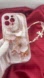 Elegant iPhone case with floral design. Features pearl accents and a beaded strap. Perfect for a stylish look.