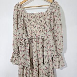 Floral Peasant Print Long Sleeve Dress
