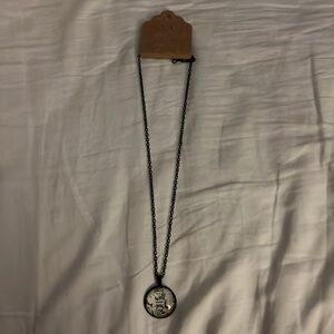Round pendant necklace with floral design and inspirational quote. Features a mix of green, white, and pink colors. NWT.