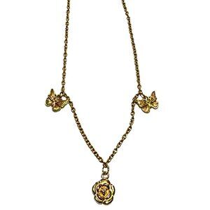 - Elegant gold-toned necklace with a delicate floral and butterfly design