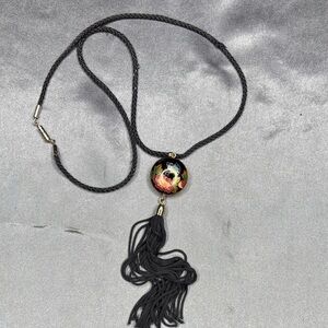 Elegant floral pendant necklace featuring vibrant colors and a stylish tassel. Perfect for adding a touch of sophistication to any outfit.