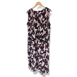 Floral Pineapple Print Smocked Bodice Midi Maxi Dress w/Pockets Size 1X 16 18