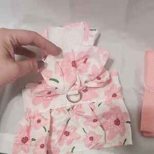 Adorable floral pink dog dress with a matching belt. Perfect for special occasions.