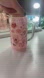 Beautiful floral pink glitter mug with a wooden lid. Perfect for hot or cold drinks.