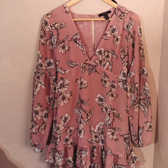 loose-fitting floral dress with a v neck and ruffles at the bottom. New!! it's so pretty but ive never worn it.