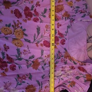 Embrace elegance with this floral pink ruffle dress. This is a size medium but I am a large and it fits me well because of the oversize fit. lovely dress that I got a while ago but just never got to wear