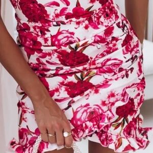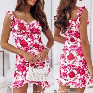 This stunning floral pink ruffle dress is perfect for any occasion, it features a flattering fit and delicate ruffle details. Stand out in style and comfort.