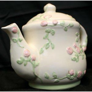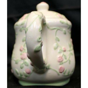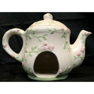 Floral Pink Teapot Tart Warmer Tealight Candle Holder Rose Romantic Cottage Whit