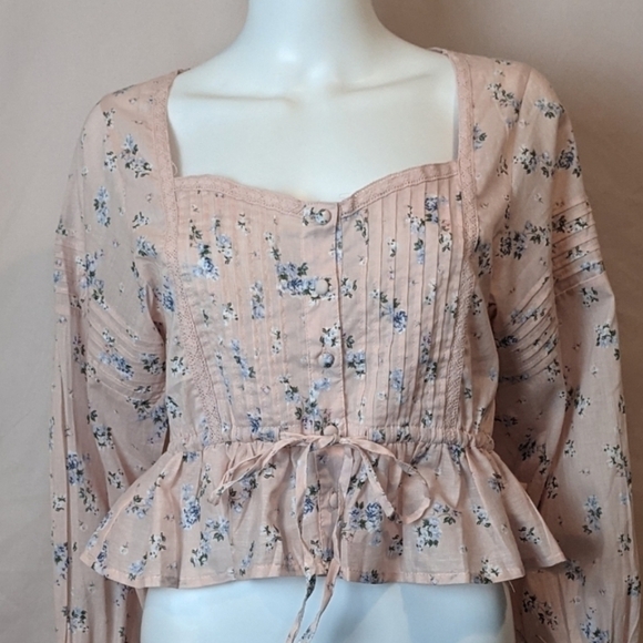 Chic and stylish floral pink top perfect for any occasion. Features a flattering fit and elegant design.