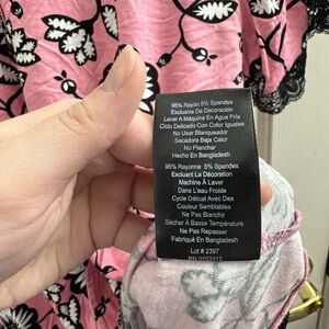 Relax in style with this floral pink and black sleepwear set. Featuring a comfortable fit and elegant lace details, this set is perfect for a cozy night's sleep.