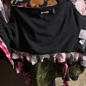 Stylish women's top featuring a vibrant pink floral pattern on a black background. Perfect for adding a pop of color to your wardrobe.