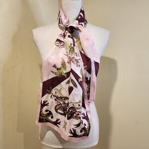 This elegant scarf features a soft pink background adorned with intricate brown floral patterns, offering a touch of sophistication. Crafted from a lightweight material, it drapes beautifully, making it a versatile accessory for any occasion.