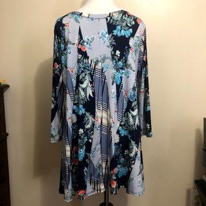 Floral & Plaid Blue Three-Quarter Sleeve Tunic (L)