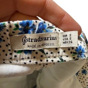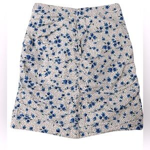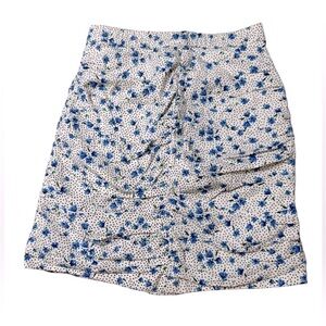 Channel your inner coquette with this adorable floral + polka dot ruched mini skirt. Fitted and flattering, this size small bodycon skirt hugs in all the right places while still keeping things sweet with blue blossoms and micro dot detailing.