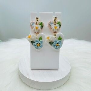 New Cute Heart-Shaped Dangle Earrings with Stud Back No-Plating