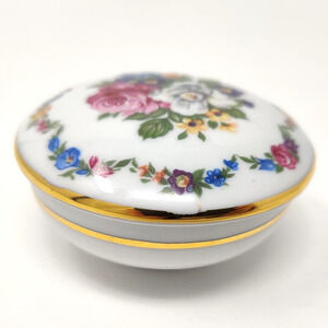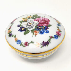 Floral Porcelain 3" Round Trinket Dish Box Earrings Rings Pins PM Wreath Crown