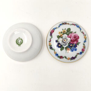 Floral Porcelain 3" Round Trinket Dish Box Earrings Rings Pins PM Wreath Crown Mark