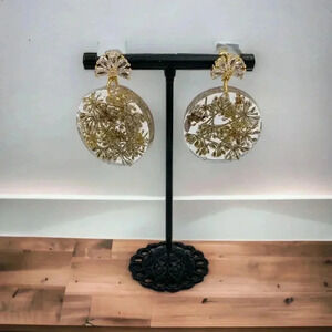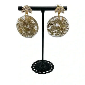 Floral Preservation Queen Ann Lace Resin Art to Wear Dangle Statement Earrings