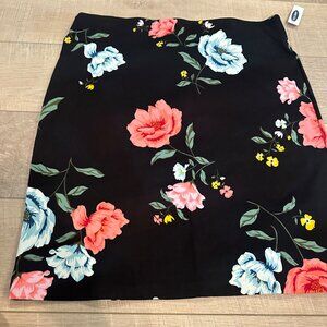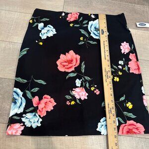 Floral Print Black Knee-Length Skirt Large Old Navy Polyester & Spandex Womens N