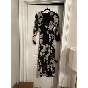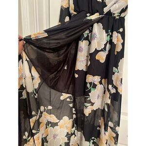 Floral Print Black Maxi Dress Vacation Resort-wear XL