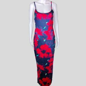 Unknown brand black & red flower print maxi spaghetti strap dress. This dress is still brand new only been worn once there are no signs of damage. Fabric material 83% Polyester 17% Elastane. The dress is stretchy.